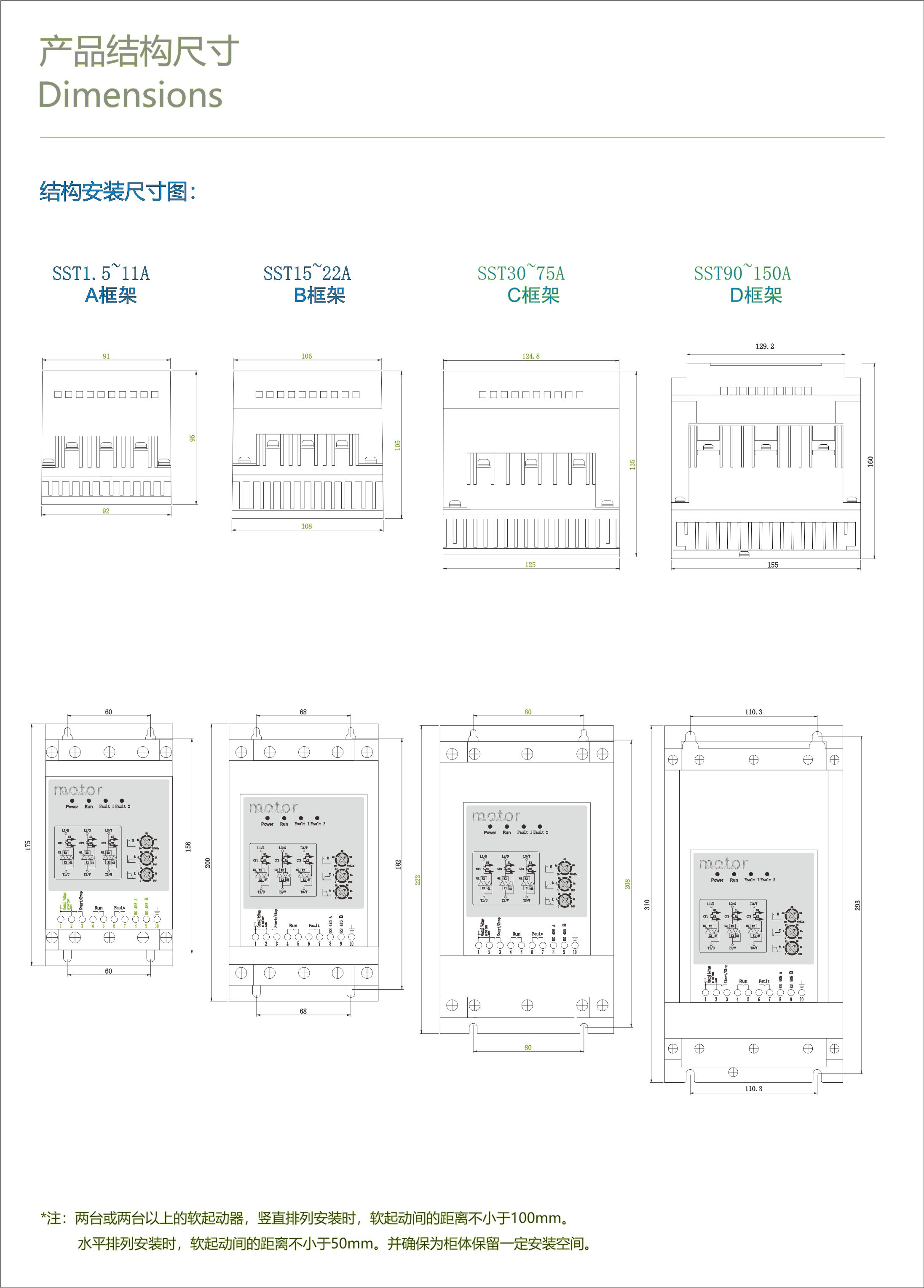 SST-A系列软起动器是一款数字式电机软起动产品,可控制电机在起动过程中平滑加速、停止过程中平滑减速,并提供了针对电动机及产品自身的保护功能。是传统星三角式及自耦降压式起动器的最佳升级替代产品。